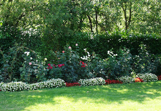 Un angolo c...: Roseto contornato da fiori e prato . Un angolo colorato per il giardino