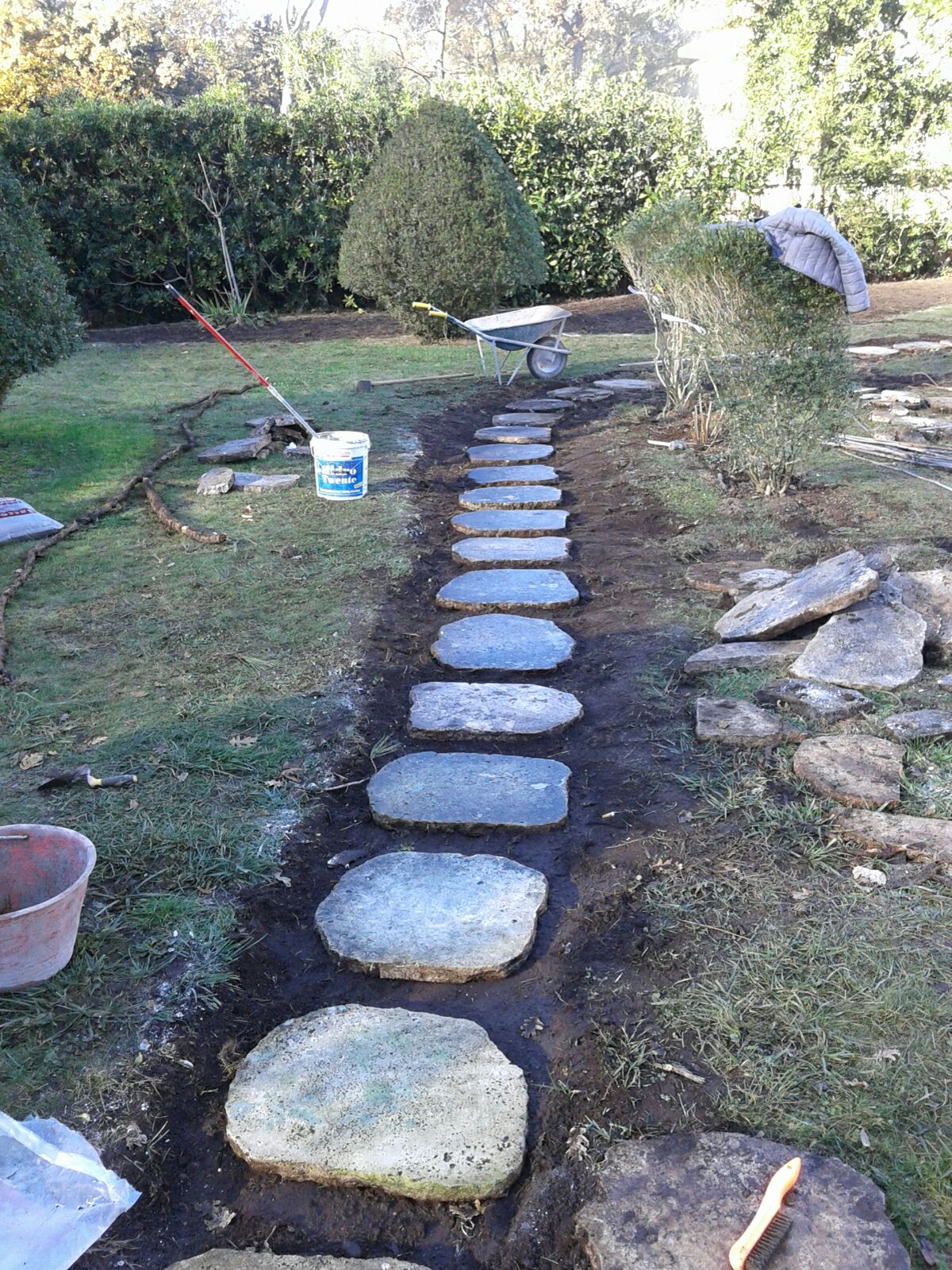 i camminamenti sono in pietra e servono si per passaggio ma anche a movimentare uno spazio articolato